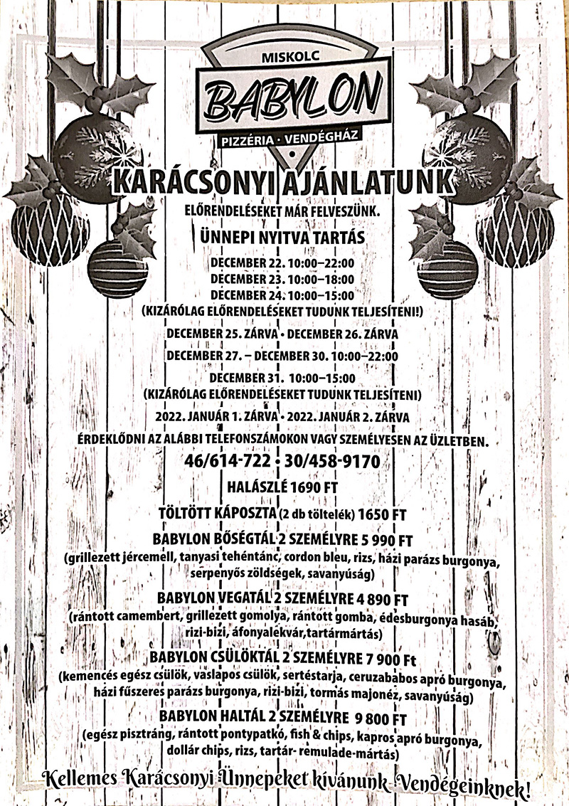 Amennyiben kínálatunk felkeltette érdeklődését, kérjük látogasson el hozzánk, kóstolja meg a Babyloni ízeket és érezze jól magát!